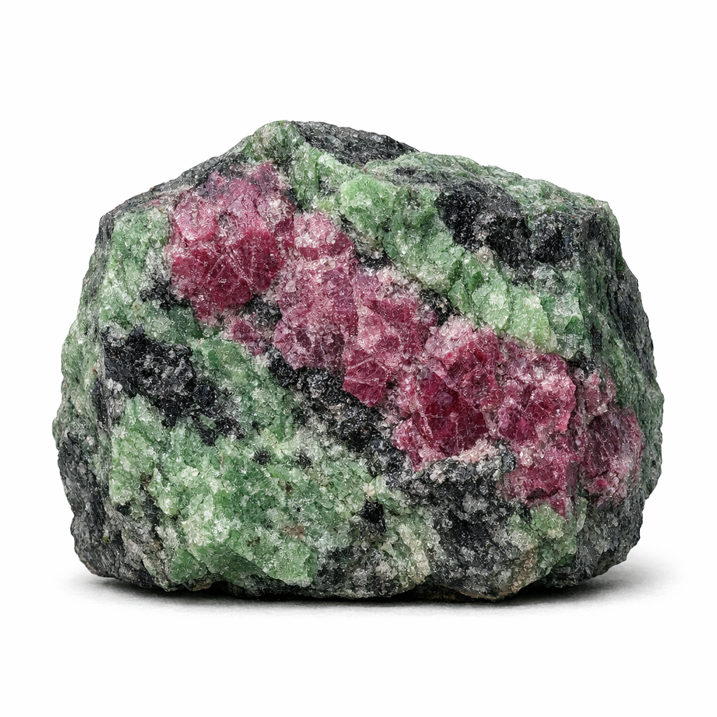 Le Rubis Zoïsite réunit deux souffles complémentaires : l’élan ardent du rubis et la verdoyante sagesse de la zoïsite. Pierre d’union, elle tisse vitalité et douceur du cœur, comme un jardin où l’énergie circule avec grâce. Elle accompagne celles et ceux qui veulent se sentir vivants sans se laisser déborder, présents à eux-mêmes et ouverts aux autres.
